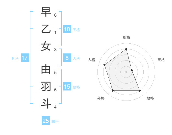 早乙女 由羽斗さんを姓名の画数から五運を鑑定