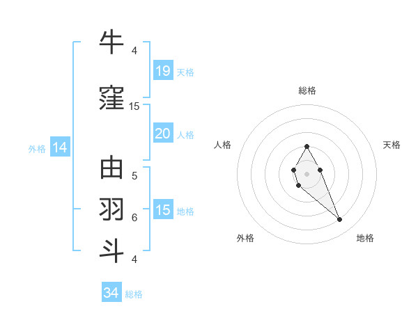 牛窪 由羽斗さんを姓名の画数から五運を鑑定