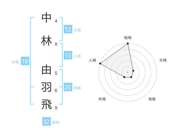 中林 由羽飛さんを姓名の画数から五運を鑑定