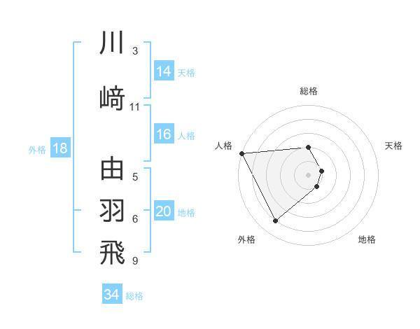 川﨑 由羽飛さんを姓名の画数から五運を鑑定