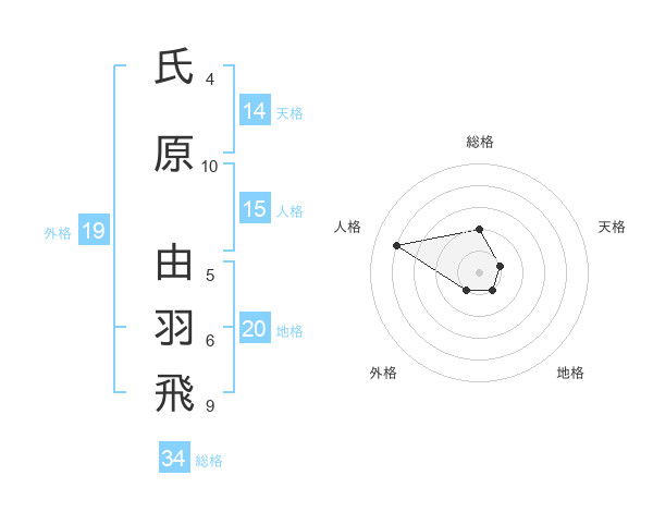 氏原 由羽飛さんを姓名の画数から五運を鑑定