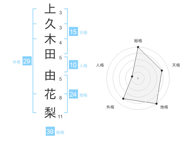上久木田 由花梨さんの総格は39画の5点