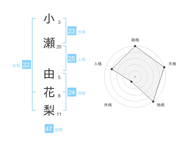 小瀬 由花梨さんを姓名の画数から五運を鑑定