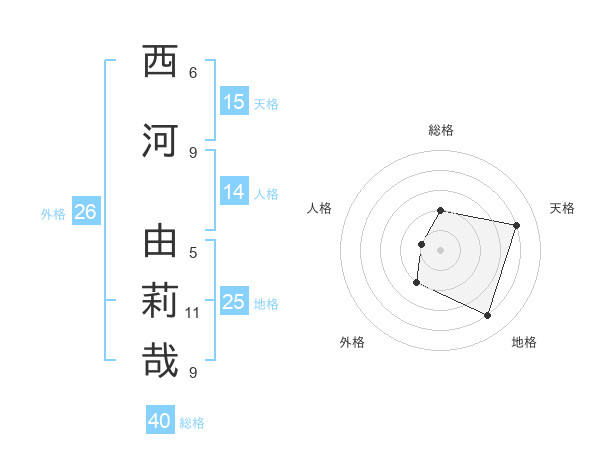 西河 由莉哉さんの天格は15画の4点!
