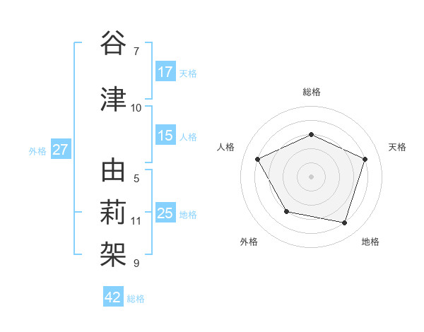 谷津 由莉架さんを姓名の画数から五運を鑑定