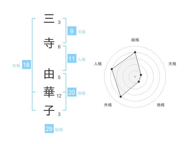 三寺 由華子さんを姓名の画数から五運を鑑定