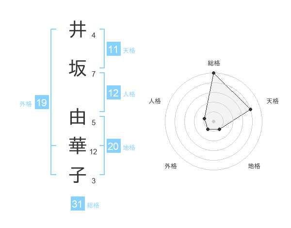 井坂 由華子さんを姓名の画数から五運を鑑定