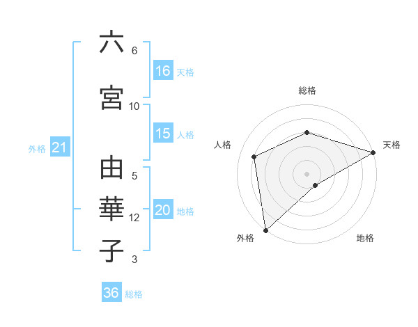 六宮 由華子さんを姓名の画数から五運を鑑定