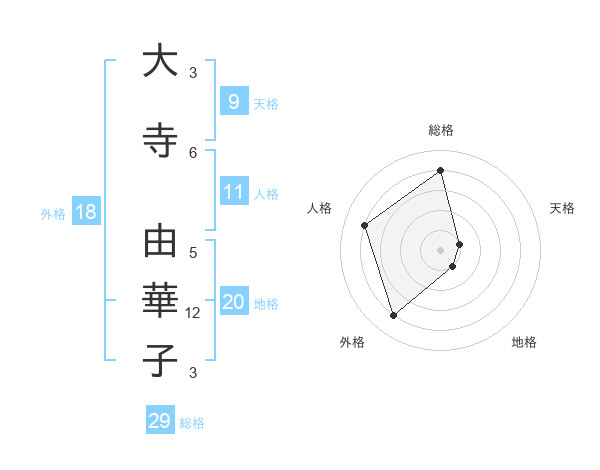 大寺 由華子さんの総格は29画の4点!