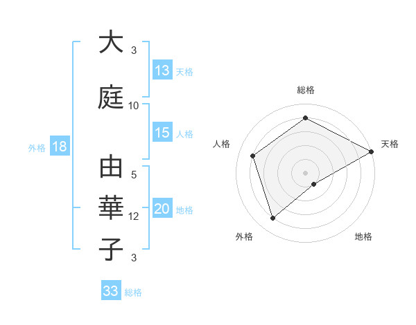大庭 由華子さんの天格は13画の5点!
