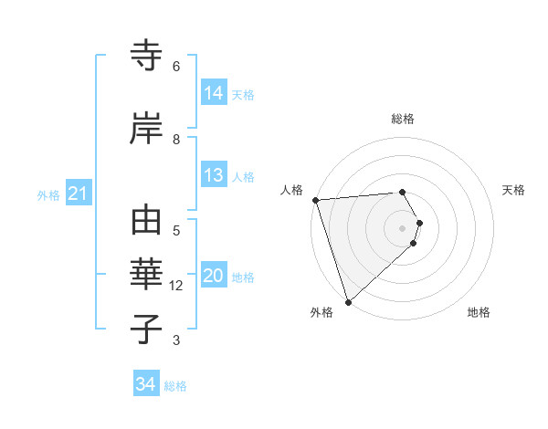 寺岸 由華子さんの外格は21画の5点!