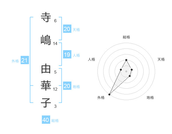 寺嶋 由華子さんを姓名の画数から五運を鑑定