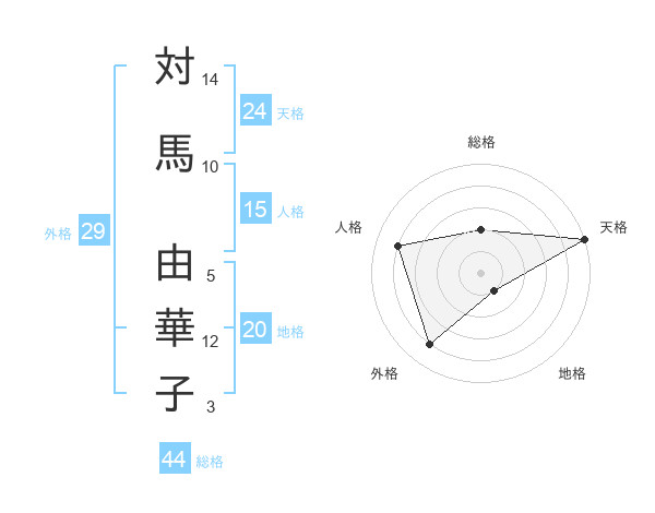 対馬 由華子さんの天格は24画の5点!