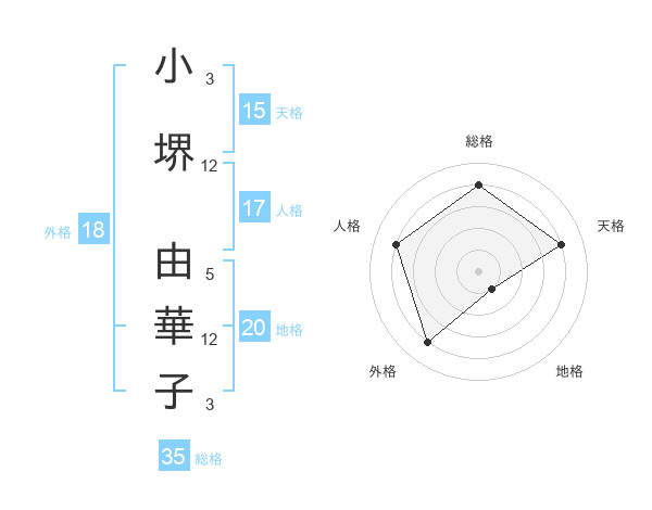 小堺 由華子さんの総格は35画の4点!
