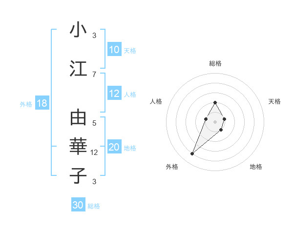 小江 由華子さんの総格は30画の2点!