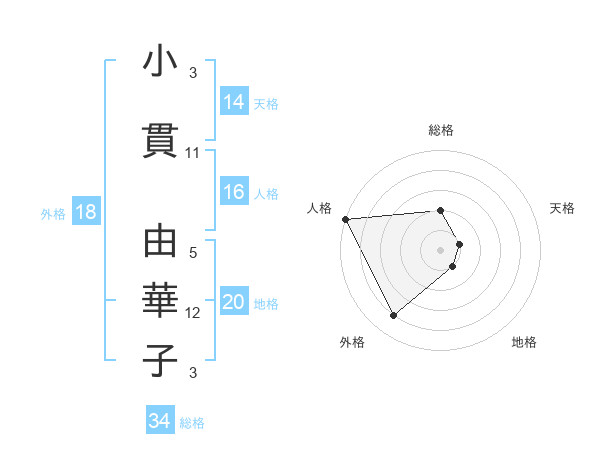 小貫 由華子さんを姓名の画数から五運を鑑定