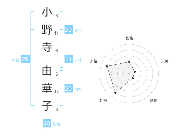 小野寺 由華子さんの総格は40画の2点!