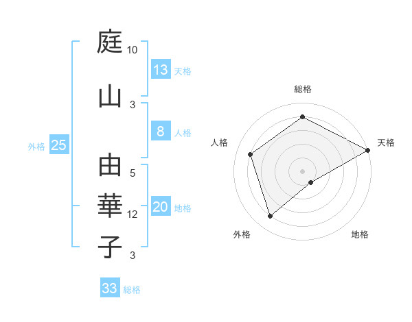 庭山 由華子さんの総格は33画の4点!