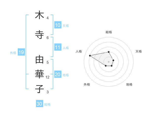 木寺 由華子さんを姓名の画数から五運を鑑定