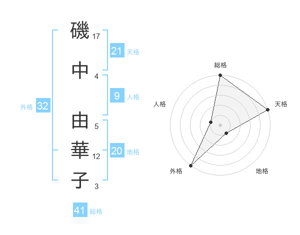 磯中 由華子さんを姓名の画数から五運を鑑定
