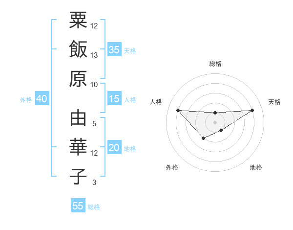 粟飯原 由華子さんを姓名の画数から五運を鑑定