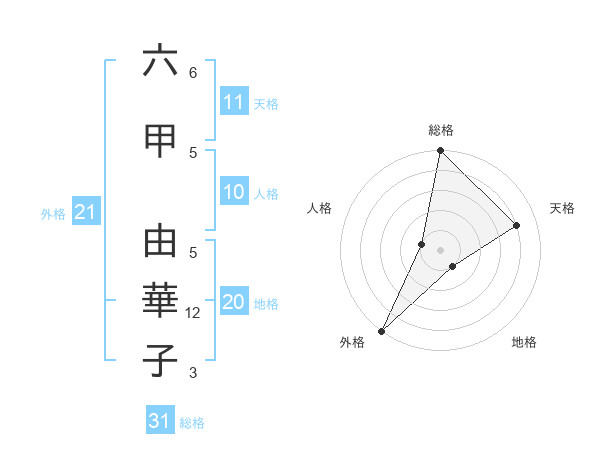 六甲 由華子さんの総格は31画の5点!