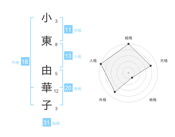小東 由華子さんの総格は31画の5点!