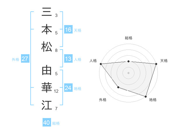 三本松 由華江さんを姓名の画数から五運を鑑定