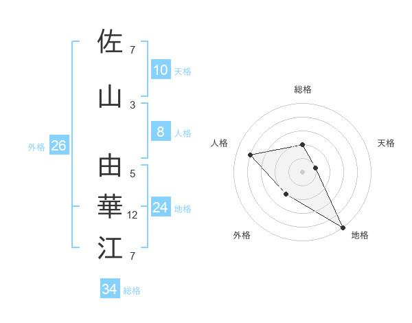 佐山 由華江さんを姓名の画数から五運を鑑定