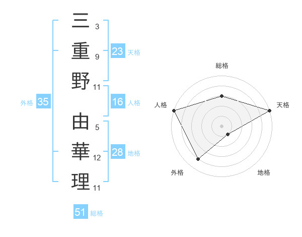 三重野 由華理さんを姓名の画数から五運を鑑定