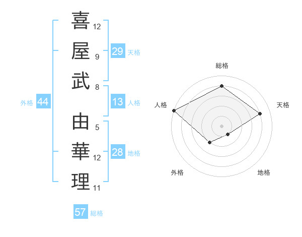 喜屋武 由華理さんを姓名の画数から五運を鑑定