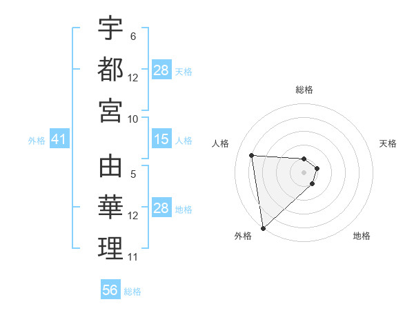 宇都宮 由華理さんの外格は41画の5点!