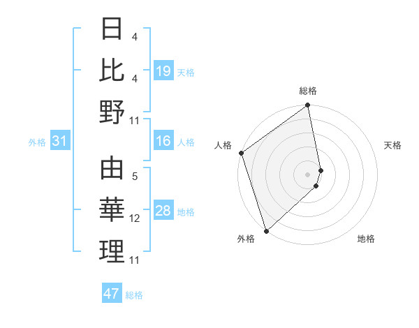 日比野 由華理さんを姓名の画数から五運を鑑定