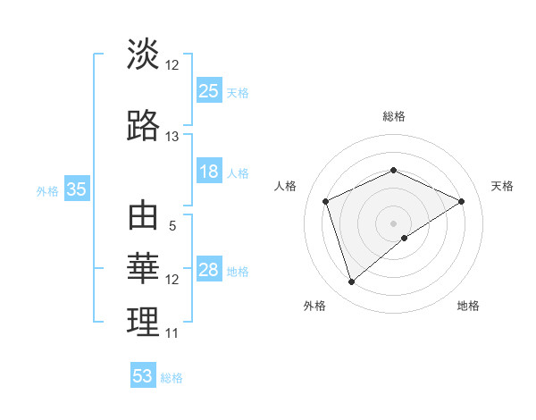 淡路 由華理さんを姓名の画数から五運を鑑定