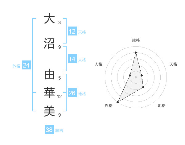 大沼 由華美さんの総格は38画の4点!