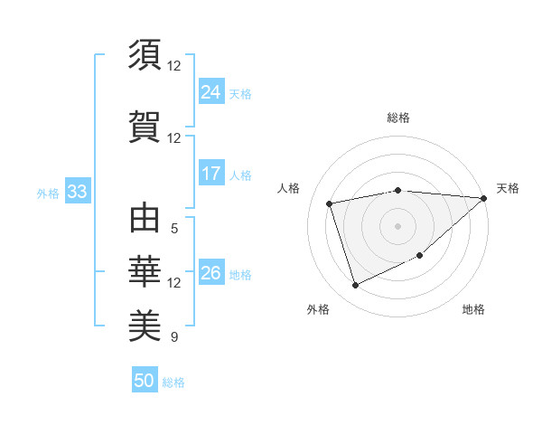 須賀 由華美さんを姓名の画数から五運を鑑定