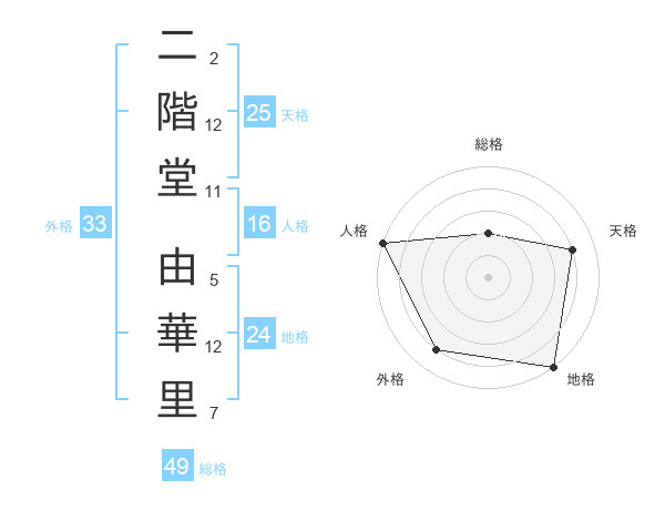二階堂 由華里さんを姓名の画数から五運を鑑定