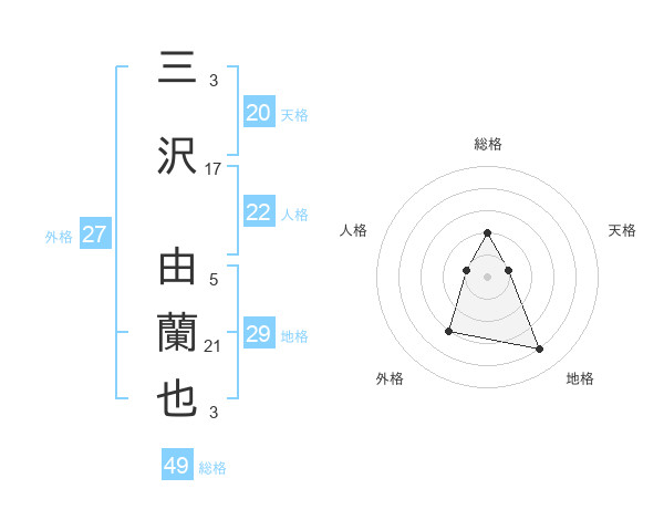 三沢 由蘭也さんを姓名の画数から五運を鑑定