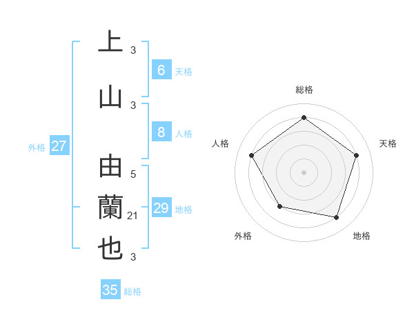 上山 由蘭也さんを姓名の画数から五運を鑑定