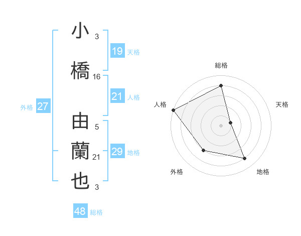 小橋 由蘭也さんの総格は48画の4点!