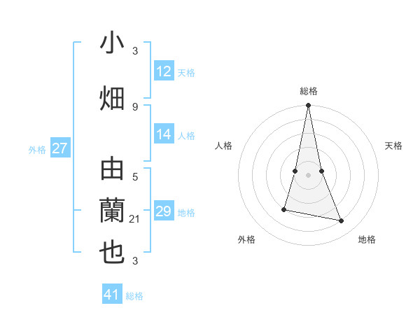 小畑 由蘭也さんを姓名の画数から五運を鑑定
