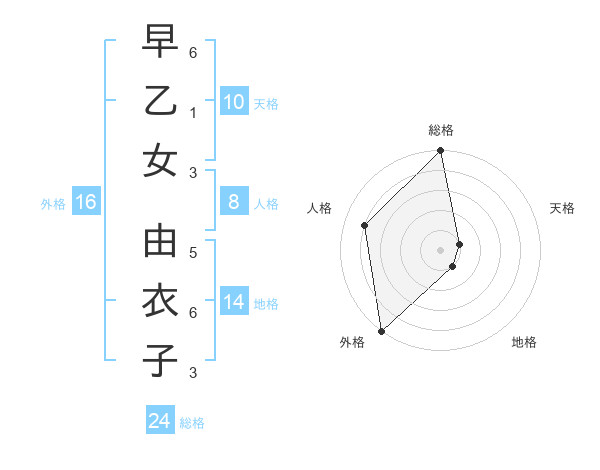 早乙女 由衣子さんの外格は16画の5点!