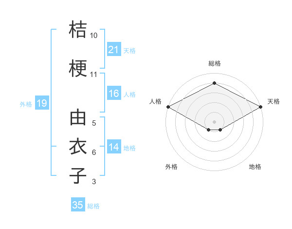 桔梗 由衣子さんの総格は35画の4点!