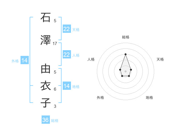 石澤 由衣子さんの総格は36画の3点