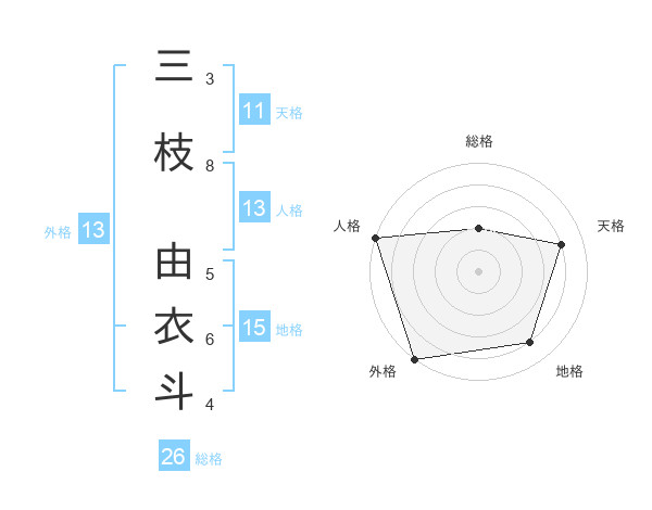 三枝 由衣斗さんを姓名の画数から五運を鑑定
