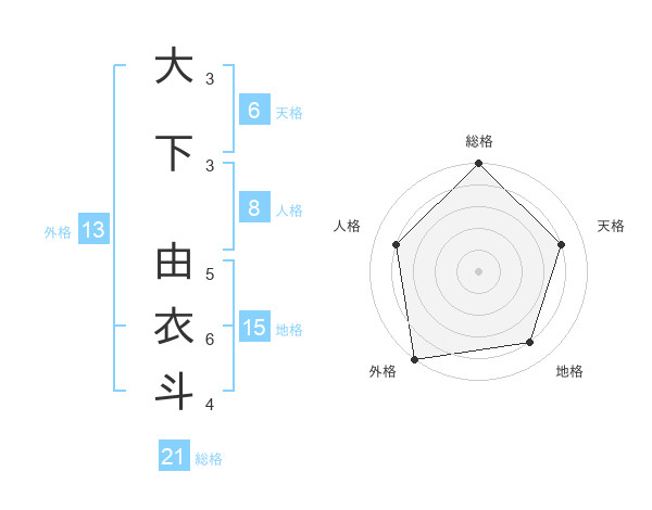 大下 由衣斗さんを姓名の画数から五運を鑑定