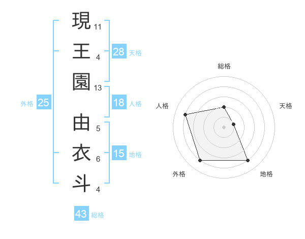 現王園 由衣斗さんの外格は25画の4点!