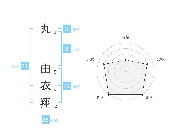 丸 由衣翔さんを姓名の画数から五運を鑑定