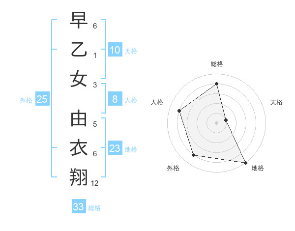 早乙女 由衣翔さんを姓名の画数から五運を鑑定
