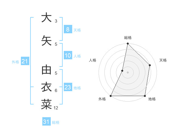 大矢 由衣菜さんを姓名の画数から五運を鑑定